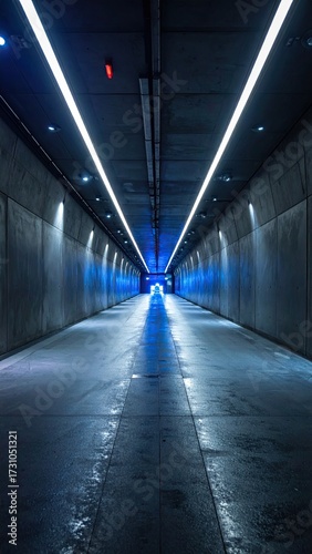 tunnel, illuminated, light, blue, perspective, concrete, wall, corridor, dark, symmetry, architecture, long, futuristic, modern, underground, passage, glowing, sleek, vertical, geometry, industrial, urban, hallway, interior, structure, design, linear, symmetric, ceiling, vanishing, point, straight, depth, space, light, glow, electric, rectangular, vibrant, muted, converging, directional, leading, path, cool