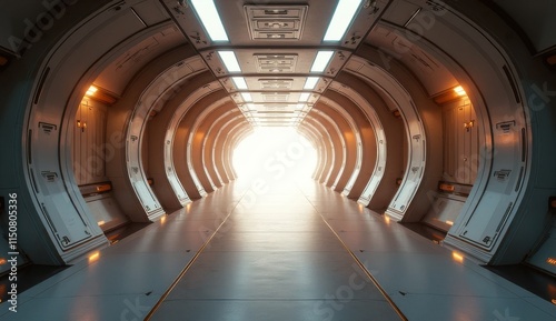 tunnel with light at end and light at spaceship hallway
