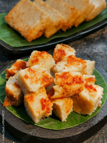 Turnip cake or chai tow kway is a Chinese dish made from steamed rice flour and grated daikon radish that is often served as dim sum.