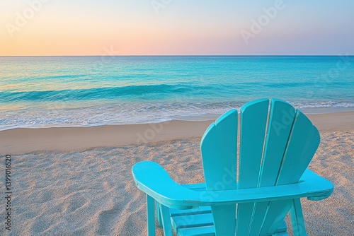 Turquoise beach chair at sunrise
