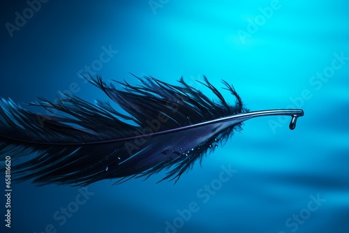 turquoise, calmness, silhouette, feather, glistening, waterdrop, elegance, lighting, elegant, bright, expressive, blue background, water, shadow, avian, twilight, captivating, serenity, high-coloured, aglow, mirage, enigma