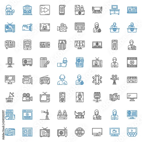 television, icon, set, vector, cinema, monitoring, screen, news, report, television, recorder, newsman, journalist, furniture, advertising, video, monitor, camera, billboard, satellite, dish, clapper-board, electronic, film, table, home, fast, forward, symbol, design, illustration, media, web, communication, isolated, pictogram, cyberspace