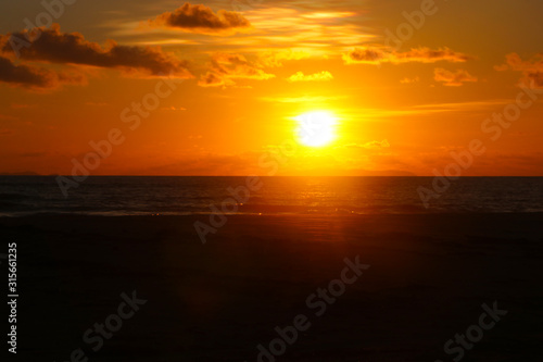 Twilight background with sunset on beautiful beach orange color nature seascape
