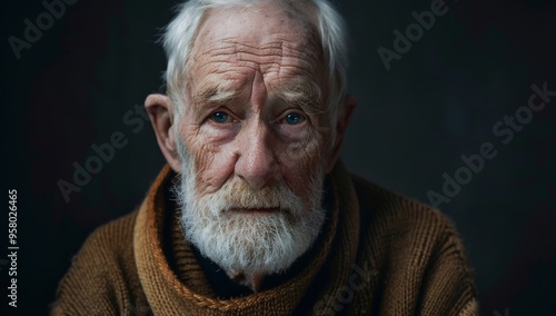 elderly, man, portrait, senior, face, wrinkle, eye, wisdom, life events, time, life, aged, mature, old, grandfather, resilience, character, grey hair, white beard, deep, contemplative, pensive, thoughtful, introspection, weathered, humanity, history, story, past, present, future, ageing, longevity, gentle, soft, candid, natural, closeup, sharpened, studio, background, black, grey, shadow, light, contrast, year, fisherman, wise