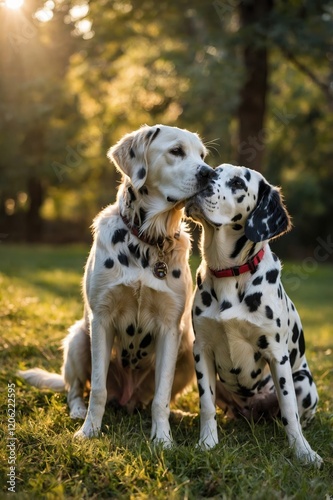 two adorable dogs a golden retriever and Kissing Days
