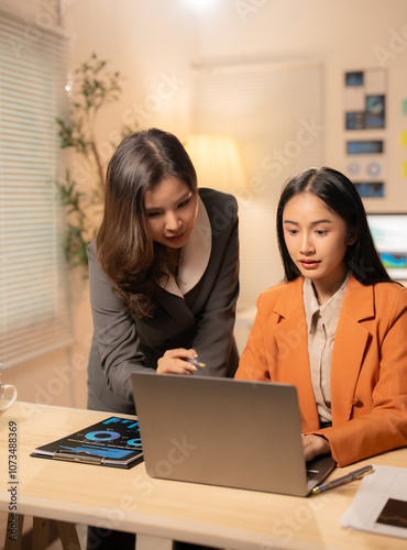 business, office, meeting, laptop, computer, work, working, woman, businesswoman, asia, asian, teamwork, collaboration, technology, finance, analysis, strategy, marketing, sale, datum, information, communication, discussion, planning, project, management, executive, professional, career, success, achievement, growth, development, learning, education, training, skill, expertise, mentor, leadership, motivation, inspiration, goal, vision, partnership, support, night, evening