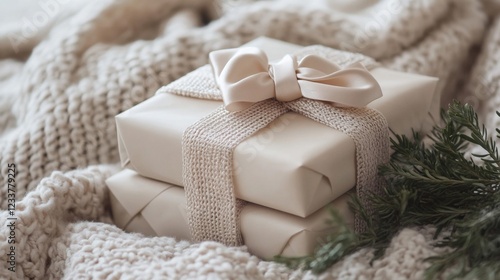 beige, gift, present, wrapped, package, ribbon, bow, knitted, blanket, threaded, texture, cosy, winter, christmas, holiday, festive, soft, warm, comfort, neutral, pastel, cream, delicate, elegant, stylish, luxurious, hand-made, craft, home, decor, serenity, peace, tranquil, minimalist, simple, natural, organic, rustic, subtile, muted, light, shade, colours