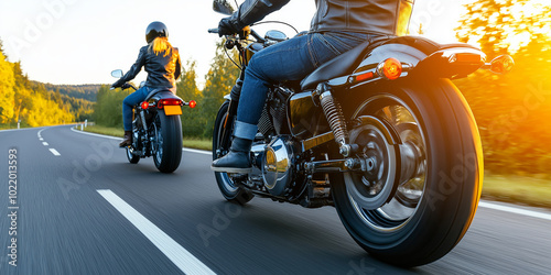 motorcycle, biker, rider, sunset, scenic, man, woman, road, journey, adventure, nature, travel, freedom, highway, camaraderie, gold, hours, landscape, asphalt, helmet, leisure, exploration, wind, tree, relaxation, route, speed, connection, companionship, biking, tour tourism, trip, biker, transportation, ride, wheel, black, chopper, motorbike, transport, bike