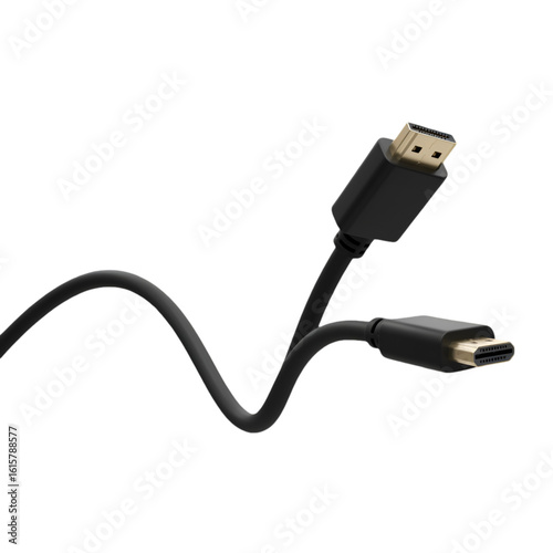 Two Black HDMI Cables isolated on Transparent Background Photo