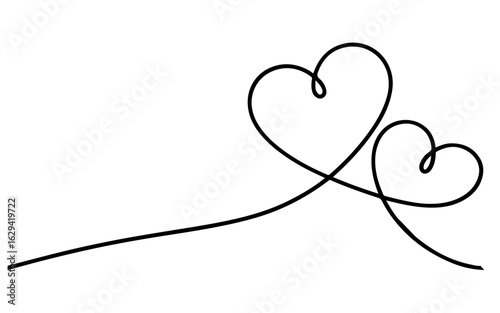 Two black hearts connected by a single line love connection