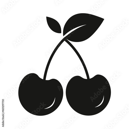 cherry, cherry, fruit, icon, black, silhouette, simple, vector, illustration, leaf, leaf, food, graphic, design, isolated, ripe, sweet, red, dessert, nature, botany, drawing, clip art, image, symbol, object, element, style, line, art, digital, template, sticker, emblem, signs, fresh, juicy, organic, healthy, vitamin, tasty, delicious, background, white, minimalist, single, pair, duet, tree branch
