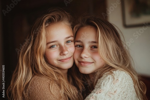 sister, blond, freckle, hugs, hug, youthful, beauty, girl, portrait, sibling, love, family, togetherness, happy, smiling, friendship, childhood, innocence, carefree, natural beauty, long hair, wavy hair, light hair, candid, intimate, affection, connection, adorable, cute, tender, sweet, pretty, charming, family portrait
