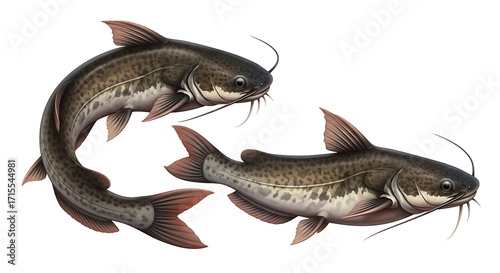 catfish, fish, water, animal, wildlife, nature, aquatic, creature, swimming, circle, pattern, brown, illustration, graphic, design, image, art, artwork, visual, representation, realistic, detailed, white, background, isolated, fauna, underwater, river, lake, duck pond, ocean, sea, fresh water, salt water, fin, tail, body, scale, eye, mouth, whisker, texture, colours, tone, shade, hue, contrast, light