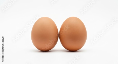 Two brown eggs, side-by-side, on a clean white background, simple studio shot