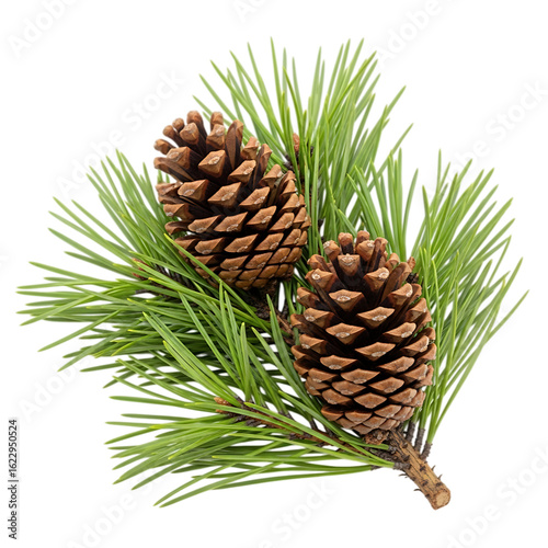 pine cone, pine, cone, evergreen, conifer, needle, pine needle, tree branch, nature, botany, plant, flora, forest, timberland, seasonal, autumn, winter, christmas, holiday, decoration, organic, texture, detail, closeup, isolated, cut-out, studio shot, no people, green, brown, food, seed, pine tree, element, ingredient