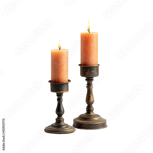 candle, candle, burning, vintage, holder, holder, candleholder, candleholder, metal, gold, black, home decor, decoration, decor, interior, design, rustic, elegant, romantic, warm, cosy, light, flames, fire, wax, tall, short, pair, 2, isolated
