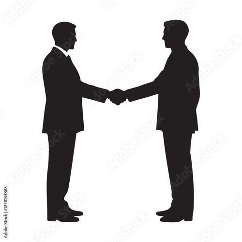 Two business partners shaking hands vector silhouette