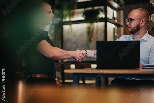 handshake, professional, indoor, negotiation, growth, meeting, business meeting, agreements, achievement, team, discussion, man, deal, businessman, consultation, teamwork, working together, corporate, partnership, innovation, workspace, conference, strategy, collaboration, laptop, indoor, workplace, leadership, colleague, support, coach, office, communication, success, contract, business, startup
