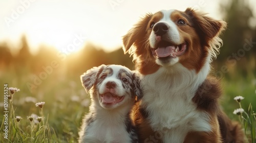 dog, duet, sunny, field, daisy, joyful, playful, friendship, happy, companionship, fun, love, bond, artistic, bright, modern, elegant, flower, greenery, smiling, canino, puppy, adventure, spring, wildlife, pet, fur, daylight, nature, adorable, scene, posing, bonding, photogenic, mood, contentment, capture, warmth, peace, style