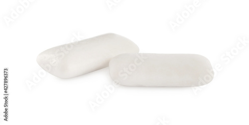 Two chewing gum pieces on white background