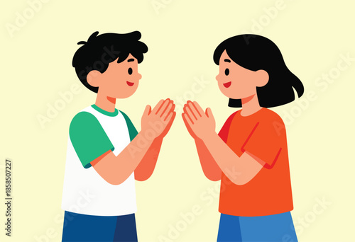 Two children facing each other, hands clasped in a game