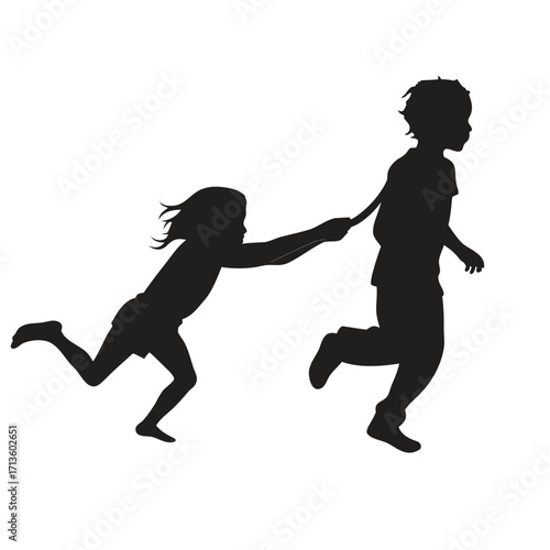 silhouette, children, running, playful, youth, childhood, activity, movement, black-and-white, simple, vector, illustration, graphic, design, children, joyful, friendship, togetherness, dynamic, energy, lifestyle, carefree, playtime, happy, family, figure, human, shape, minimalist, abstract, symbolic, positive, concept, oneness, connection, freedom