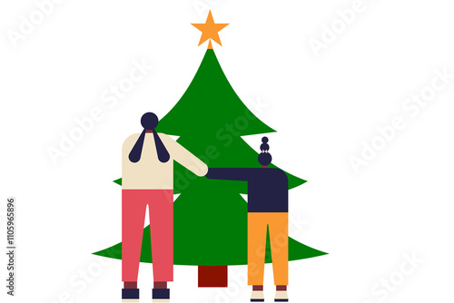 home, children, girl, sister, christmas, tree, holiday, fir, winter, decoration, christmas, christmas tree, illustration, celebration, card, green, pine, vector, season, december, merry, evergreen, design, kindergarten, year, isolated, greeting, post, house, art, cartoon, symbol, hair, school