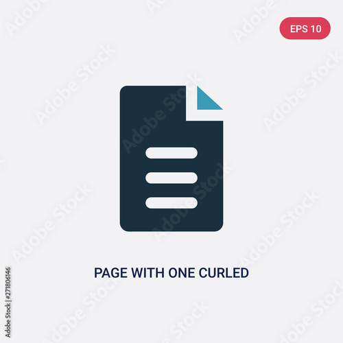 two color page with one curled corner vector icon from user interface concept. isolated blue page with one curled corner vector sign symbol can be use for web, mobile and logo. eps 10