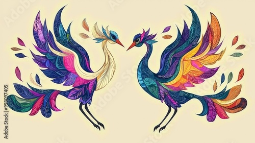 bird, bird, colourful, feather, intricate, pattern, design, art, illustration, graphic, abstract, animal, nature, fantasy, whimsical, mythical, creature, elegant, graceful, delicate, beauty, vibrant, bright, contrasting, yellow, blue, red, pink, purple, green, teal, orange, beige, background, isolated, graphic design, digital artwork, artistic, artwork