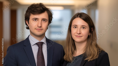 Two confident young professionals in formal attire. Portraying ambition and professionalism in the modern workplace.