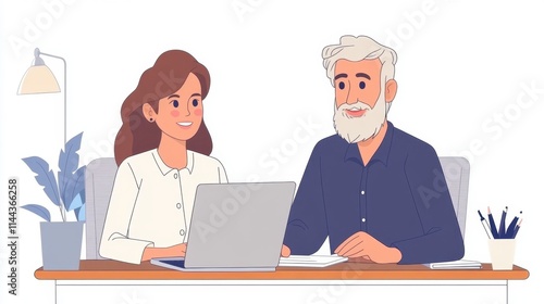 professional, teamwork, laptop, group, collaboration, business, meeting, discussion, office, work, technology, communication, engagement, colleague, computer, woman, sitting, chair, people, desk, businessman, cartoon, vector, illustration, person, working, silhouette, job, cyberspace, couple, interview, drawing