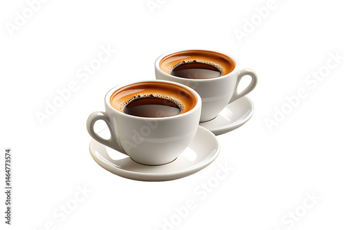 Two Cups of Fresh Espresso Coffee isolated on transparent background.