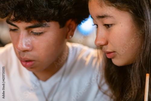 best friend, brunet, closeup, closeup, couple, crop, date, diverse, diversity, earring, hugs, focused, friends, friendly, friends, friendship, head, head shot, looking away, meet, mixed, necklace, portrait, sharing, smile, student, t-shirt, together, 2, watch, watching