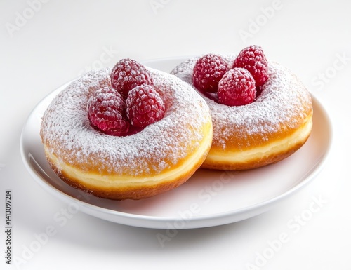 food, white, background, dessert, breakfast, isolated, sweet, snack, sugar, delicious, cake, pastry, closeup, tasty, bakery, donut, donut, fresh, baked, round, cream, donut, plate, unhealthy, fat, 2, eat, icing, raspberry, berry, red, powdered, covered