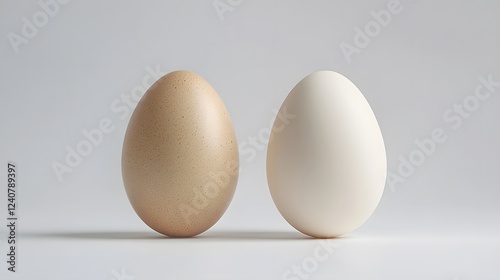 egg, egg, brown, white, speckled, smooth, texture, contrast, difference, comparison, colours, shape, oval, round, poultry, farm, food, breakfast, cookery, cooking, baking, ingredient, dietary, protein, nourishment, healthy, organic, natural, fresh, single, pair, duet, side, by, minimal, simple, background, studio, light, shadow, photo, image, visual