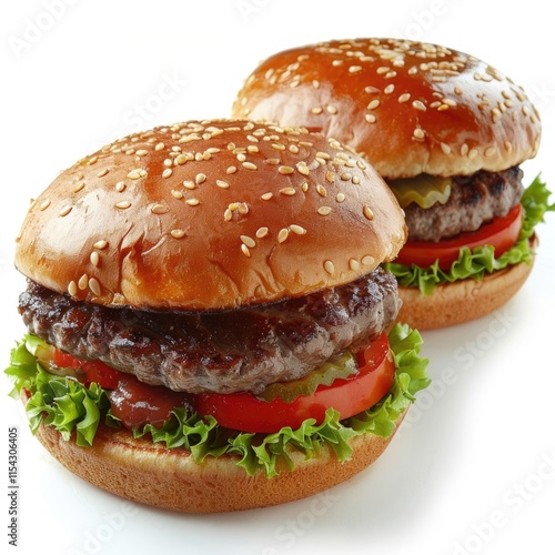 two extra thick hot beef meat hamburger lunch isolated on white background