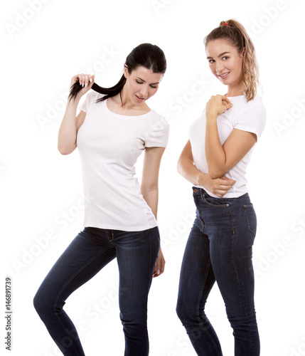 2, couple, girlfriend, friends, female, woman, girl, caucasian, brunette, family, white, background, face, body, happy, beautiful, smile, jean, clean, fashion, bright, people, 20s, attractive, beauty, cheerful, clothes, cute, friends, isolated, sister, lady, looking, like, person, portrait, pretty