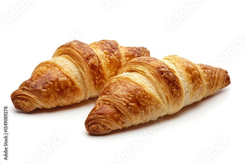 Two Fresh Croissants Isolated on White Background Studio Shot