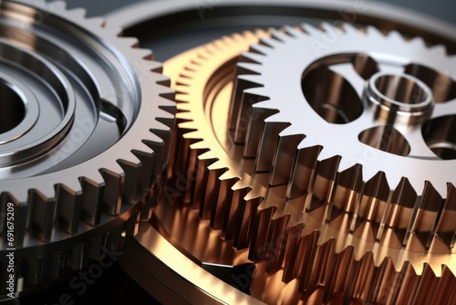 Two gears displayed in a close-up shot on a table. Ideal for industrial and mechanical concepts