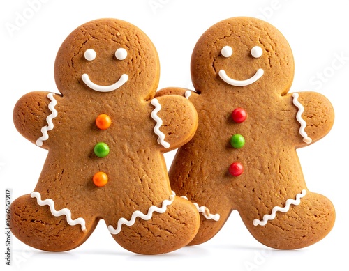 gingerbread, cookie, christmas, baked, food, sweet, festive, holiday, treat, delicious, isolated, close, up, 2, man, human, figure, ginger, spicey, icing, ornament, colourful, design, traditional, homemade, deliciously, background, white, display