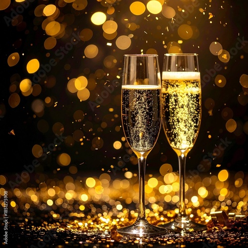 champaign, glasses, celebration, drink, holiday, party, new, alcohol, gold, decoration, beverage, festive, sparkling, new year, anniversary