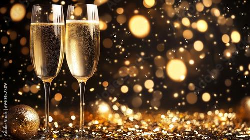 champaign, christmas, glasses, wine, celebration, drink, alcohol, holiday, new, party, year, decoration, beverage, gold, eve, celebrate, gift, festive, 2, christmas, anniversary, toast, goggles, gold, table