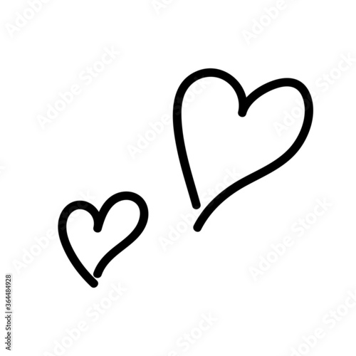 Two hand drawn hearts. Doodle vector illustration for greeting cards, posters, stickers and seasonal design. Isolated on white background