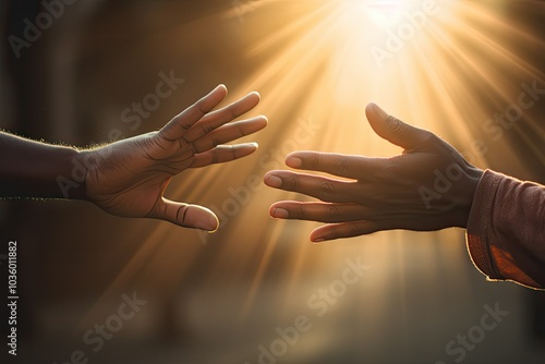 hand, reaching, connection, sunlight, evening, gesture, warm, light, togetherness, oneness, compassion, support, warmth, serenity, nature, friendship, love, diversity, communication, intimacy, symbolic, spirituality, human, emotion, hope, together, helping, light rays, touch, palm, finger, bonding, peace, calmness, cooperation, assistance, human relationships, sharing, harmony, optimism, uplifting, calm, kindness, vulnerability, engagement, moment, interaction