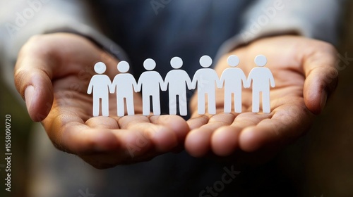 Two hands holding a paper cutout of a group of people.