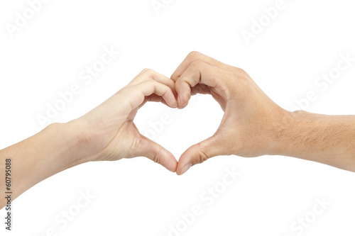 two hands make heart shape on white background