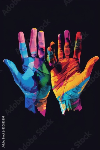 Two hands painted with different colors. Suitable for art and diversity concepts