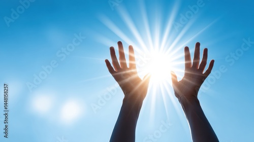 sunlight, hand, sky, sun, ray, warmth, hugs, serenity, vitality, spiritual, hope, healing, radiant, vision, peace, motivation, shine, inspiration, wellness, gesture, atmosphere, glow, positive, vibrant, dream, open, sunrise, bliss, success, power, aspiration, renewal, optimism, clarity, happiness, health, energy, morning, light, cheerful, outdoors, blue, nature, bright, summer, fresh, day