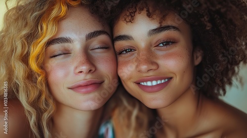 two happy women smiling and embracing symbolizing lgbtq visibility and love.stock image