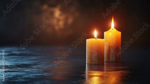 Two Illuminated Candles on a Dark Background with Space for Copy